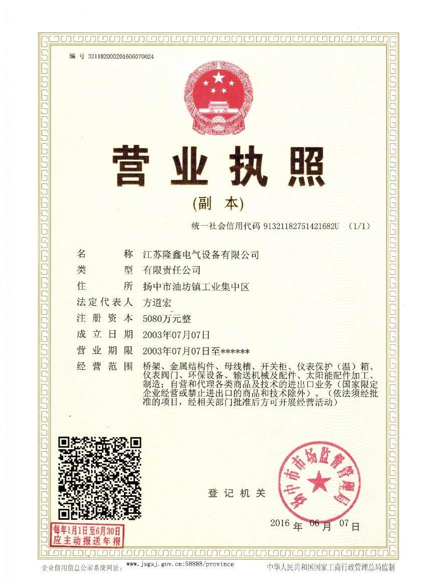 江蘇隆鑫電氣設(shè)備有限公司(原揚(yáng)中市隆鑫電器設(shè)備有限公司)位于風(fēng)景秀麗的江南古城 ---- 鎮(zhèn)江東部揚(yáng)子江畔,水陸交通便利。 本公司是中石化網(wǎng)絡(luò)成員企業(yè),是揚(yáng)中橋架企業(yè),工業(yè)管道閥門、儀表管配件、母線槽、匯線橋架、玻璃鋼制品的專業(yè)生產(chǎn)廠家。 我公司一貫以經(jīng)營以管理為保證、以科技進(jìn)步為動(dòng)力,使產(chǎn)品的市場(chǎng)占有率不斷提高,公司正持續(xù)、穩(wěn)步、健康地向前發(fā)展,秉循“創(chuàng)造完美、服務(wù)用戶、奉獻(xiàn)社會(huì)”的經(jīng)營觀念,本公司生產(chǎn)的儀表管件及閥門系列產(chǎn)品、母線槽、電纜橋架幾乎覆蓋全國31個(gè)省、市、自治區(qū)的化工、冶金、交通、輕...